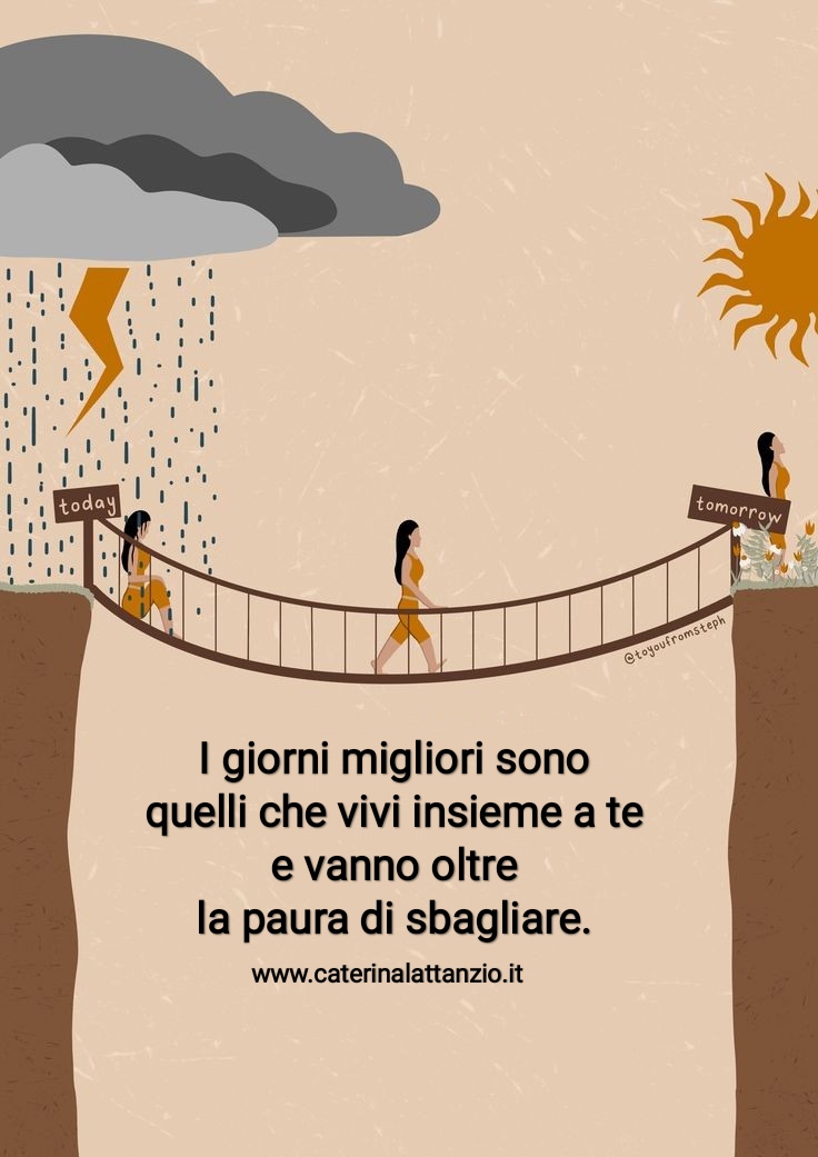 CAMMINATI AFFIANCO: incoraggiati nei momenti bui; raccontati dei momenti in cui hai gioito provando stupore e meraviglia; di quante volte cadendo hai sconfitto la fatica; di quando pensavi di non farcela e invece è stato un successo; di quando nella tristezza hai costruito il tuo valore e modellato la tua sensibilità.